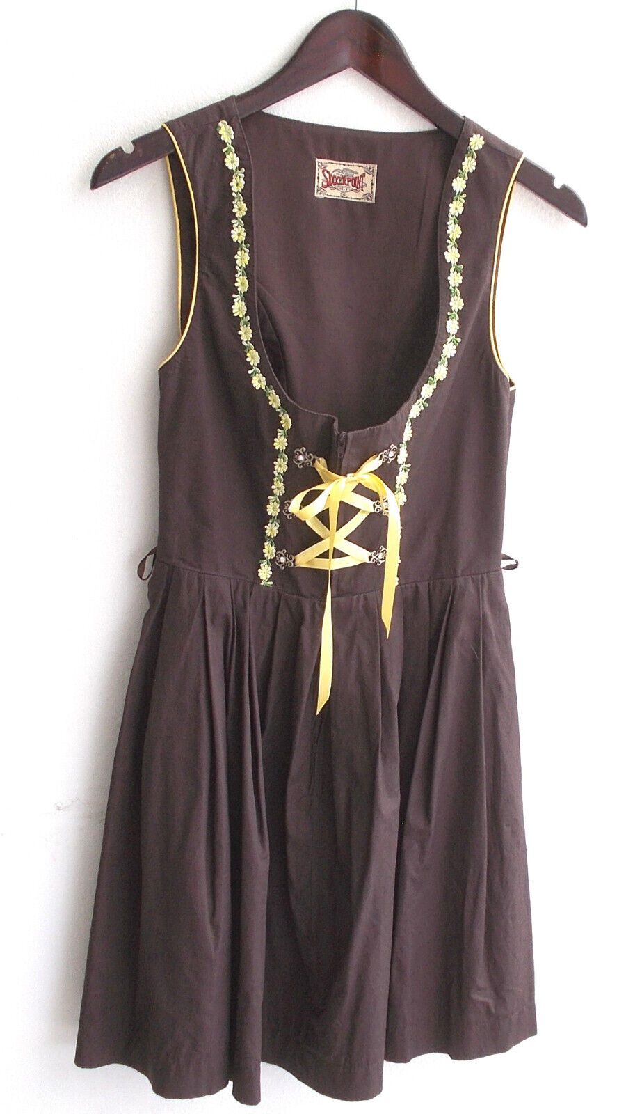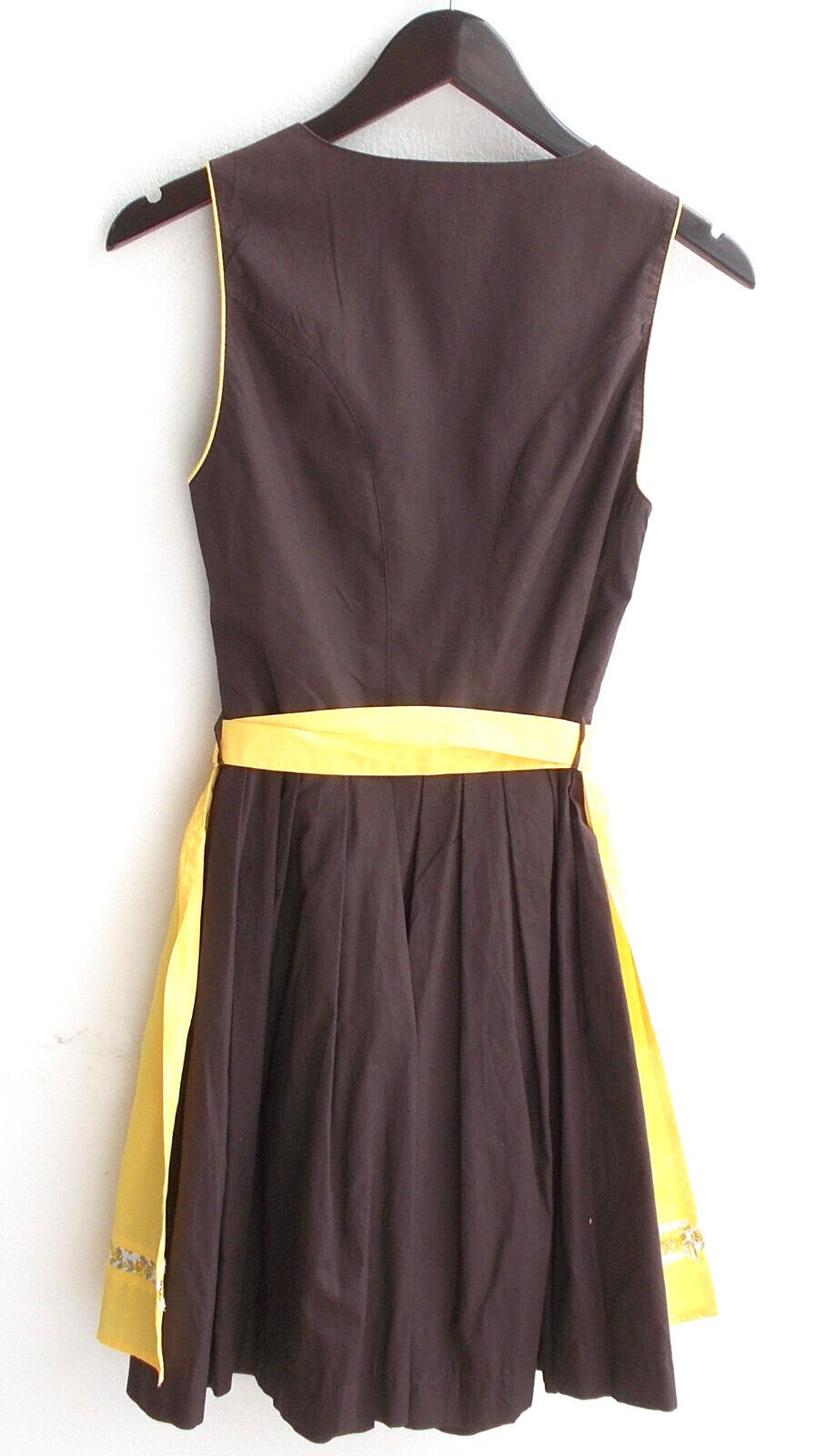 Damen Trachten Dirndl ärmellos braun m. gelber Schürze Gr. 36 v. Stockerpoint