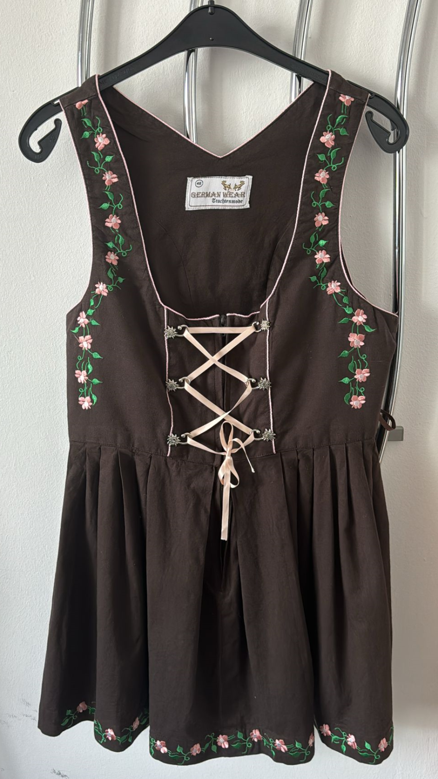 Damen Trachten Dirndl ärmellos braun m. Stickerei Gr. 48 v. German Wear