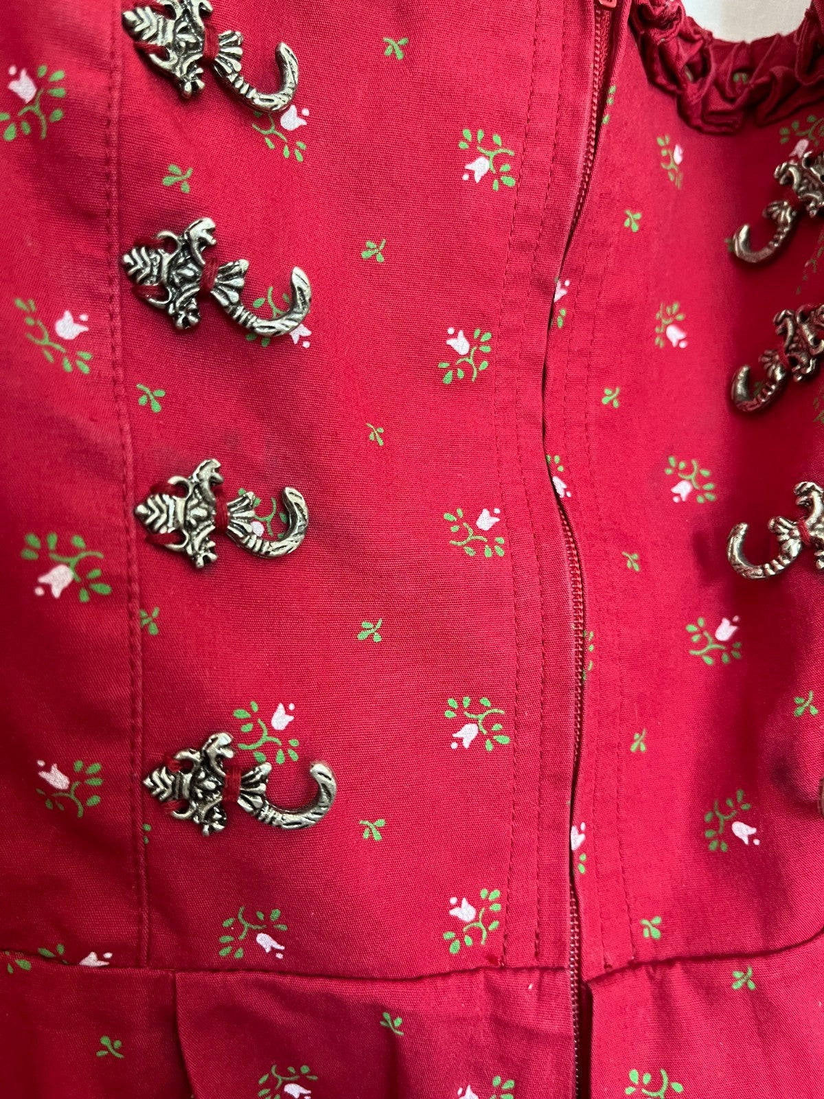 Damen Trachten Dirndl ärmellos Rot gemustert Gr. 42 v. Original Steindl