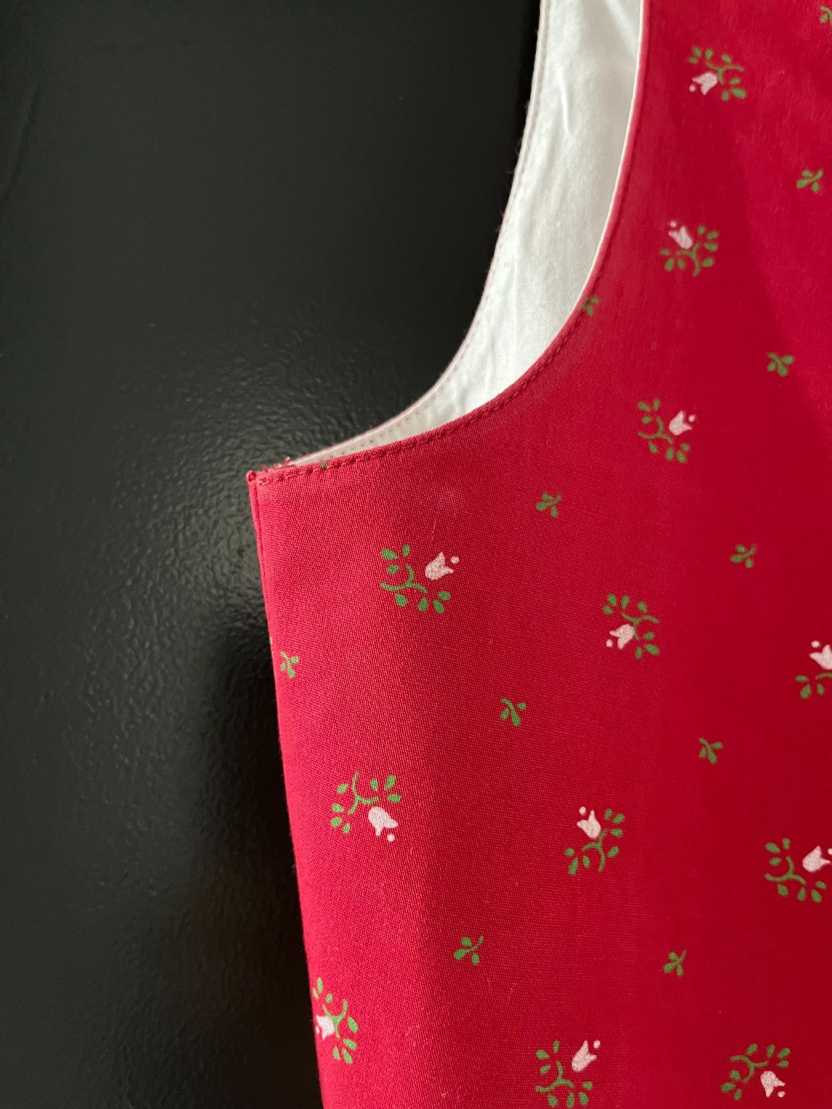 gebrauchtes Damen Trachten Dirndl ärmellosRot, grün-rosa gemustertohne SchürzeGr. 42 (s. Maße)einfache Brustweite: ca. 45,5 cmeinfache Taillenweite: ca. 39 cm