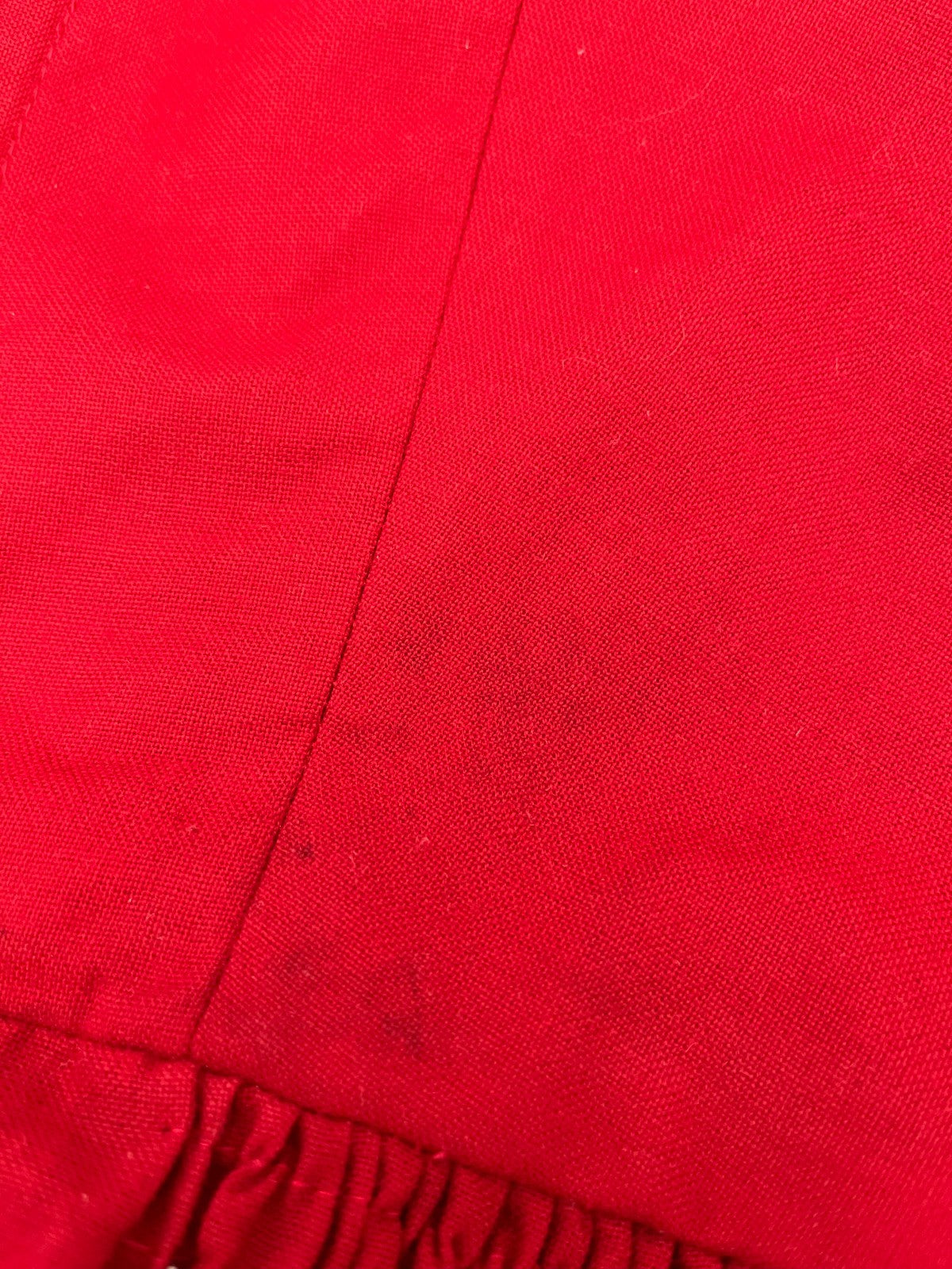 gebrauchtes Damen Trachten Dirndl ärmellosRot mit Schürze in grün-weiß gemustert mit Stickerei ca. Gr. 40 (s. Maße) einfache Brustweite: ca. 44 cmeinfache Taillenweite: ca. 36 cm