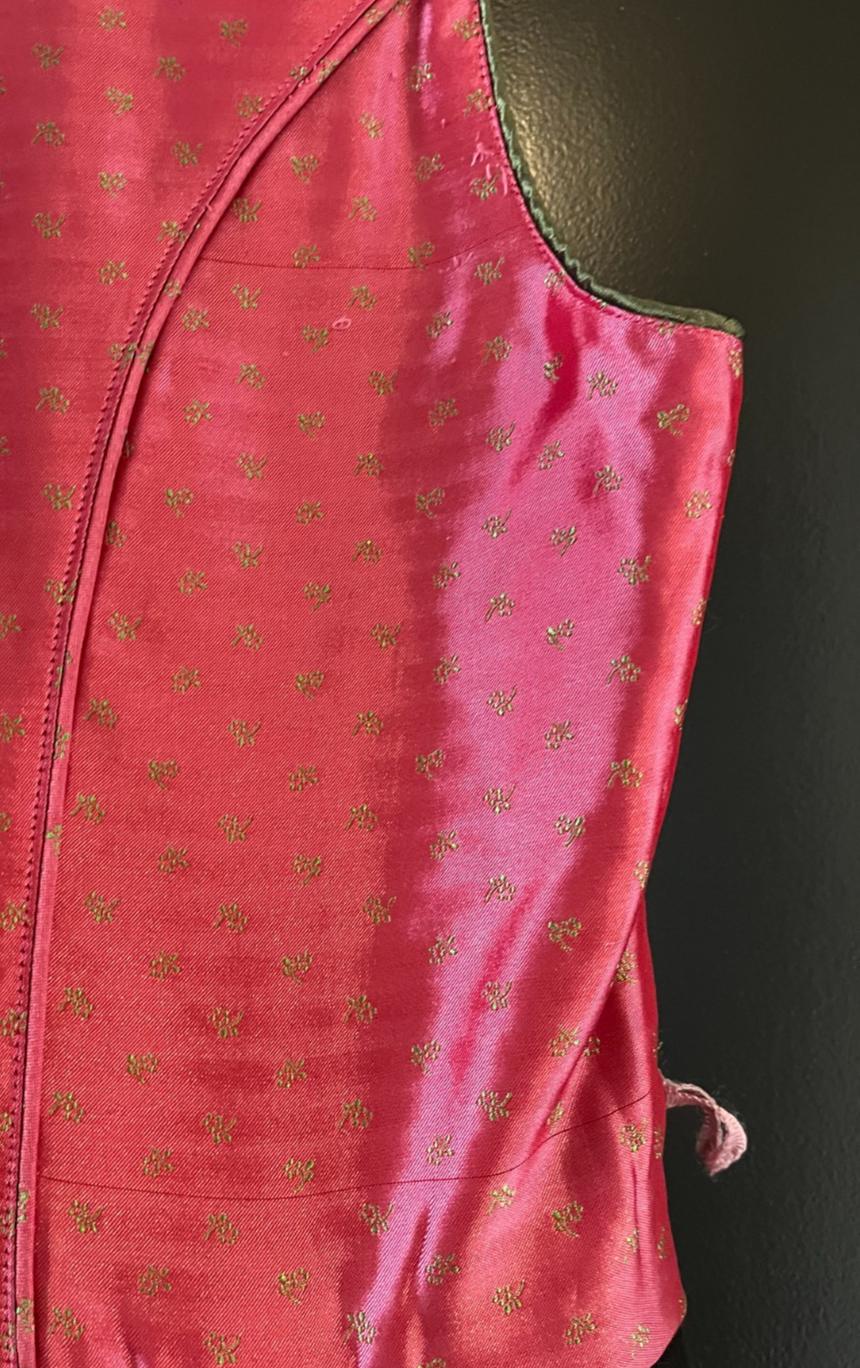 gebrauchtes Damen Trachten Dirndl ärmellosSchwarz, Rosa-Grün gemustertohne SchürzeGr. 38 (s. Maße) einfache Brustweite: ca. 44 cmeinfache Taillenweite: ca. 36 cm