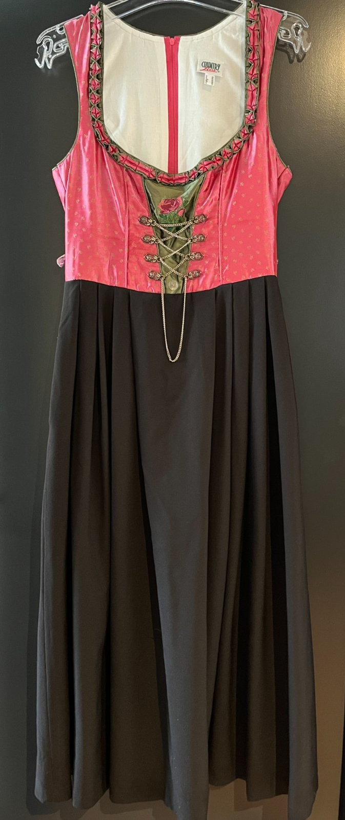Damen Trachten Dirndl ärmellos Schwarz Rosa gemustert ca. Gr. 38 v. Country Line