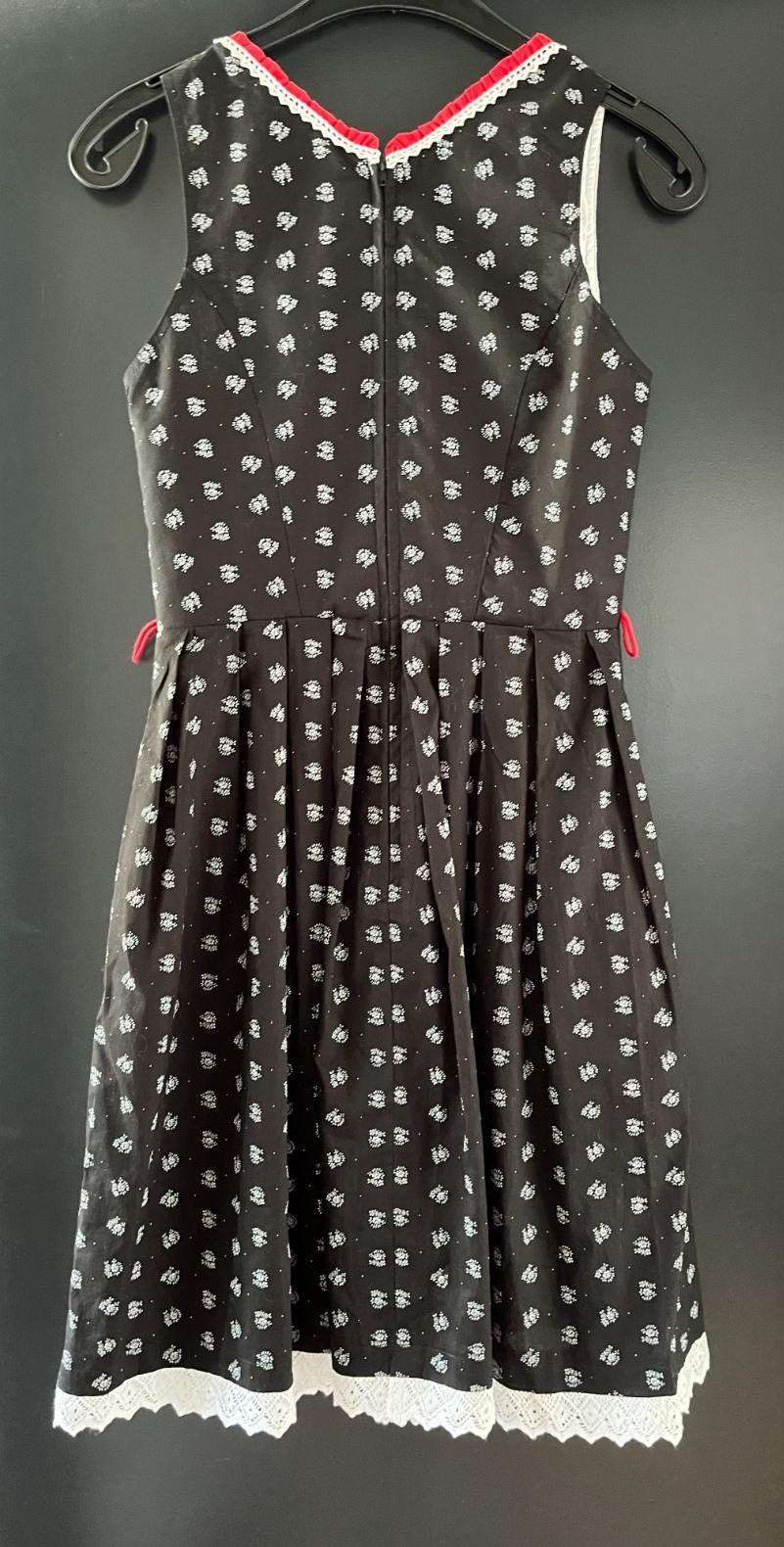 gebrauchtes Damen Trachten Dirndl ärmellosSchwarz, Weiß, Rotohne Schürzeca. Gr. 34 einfache Brustweite: ca. 41 cmeinfache Taillenweite: ca. 35 cm