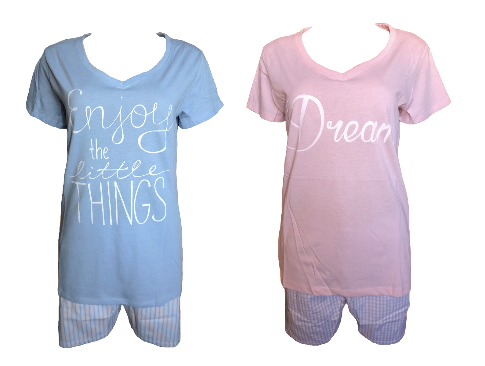 Damen Shorty 2-teilig Nachtwäsche Blau Rosa Gr. S M L