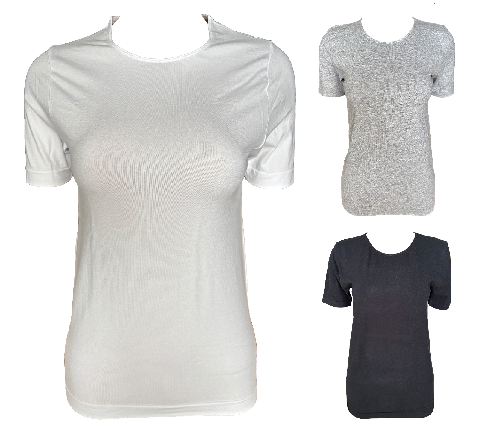 Damen Unterhemd T-Shirt Seamless Kurzarm Weiß Grau Schwarz Gr. S M L
