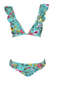 Bikini ohne Bügel mit Blumenmuster Grün Gr. 38