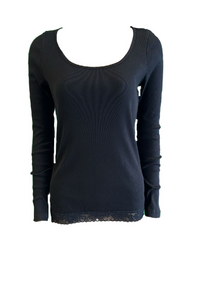 Damen Rippshirt Langarmshirt Schwarz Gr. S