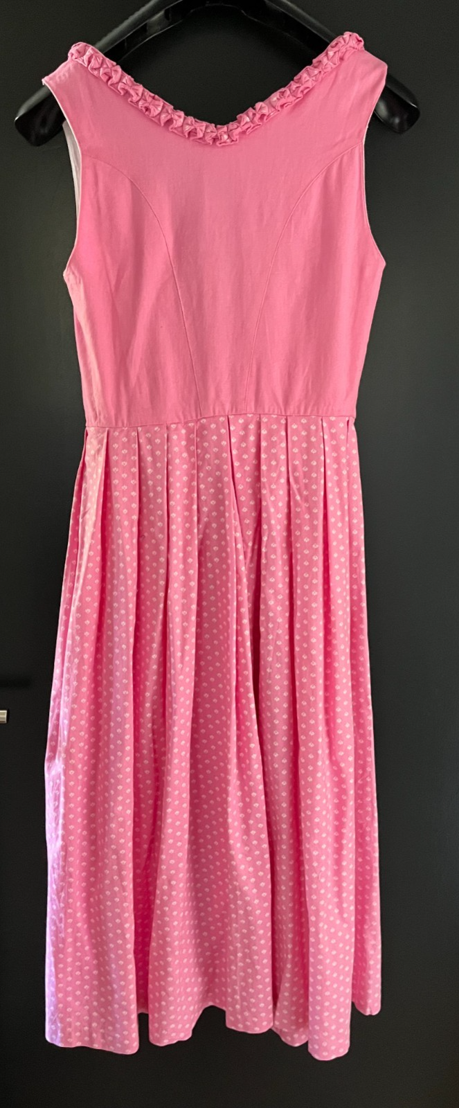 gebrauchtes Damen Trachten Dirndl ärmellosRosa, weiß gemustertohne SchürzeGr. 38 (s. Maße) einfache Brustweite: ca. 40 cmeinfache Taillenweite: ca. 34 cm
