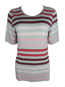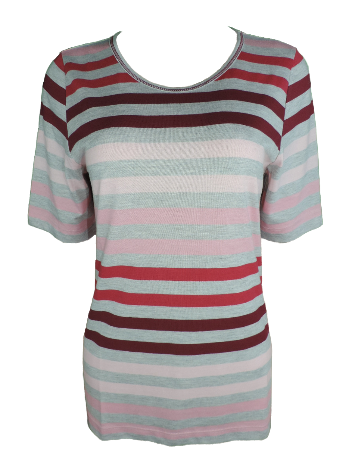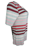 Joy Damen T-Shirt ANJA Kurzarm Gestreift Grau/Rosa/Rot Gr. 36 38 40 42 46 48 50